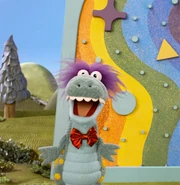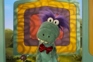 Game Show Gator is a new character created for the Donkey Hodie series, and not based on any original character from Mister Rogers' Neighborhood.